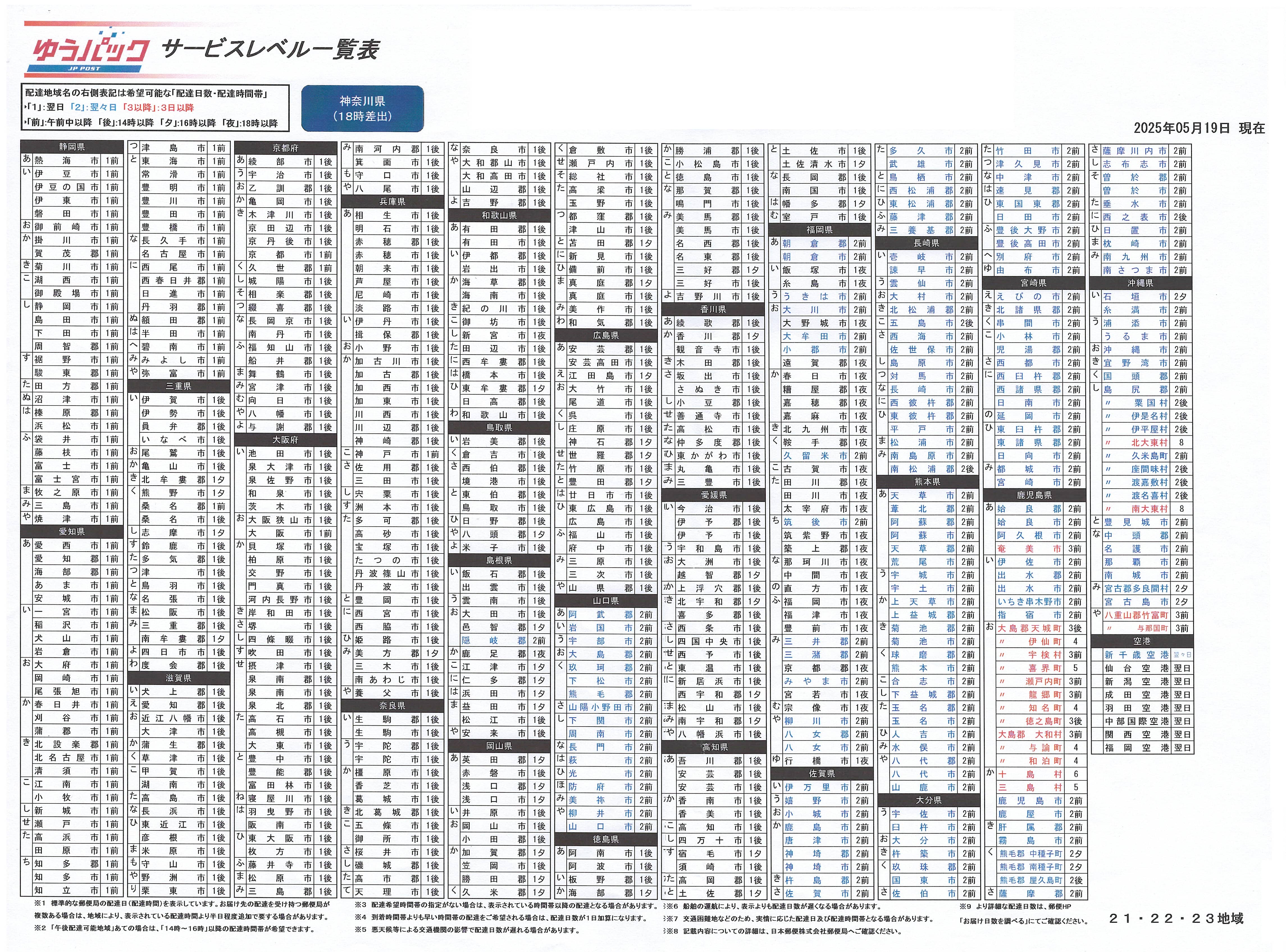 ご指定いただけない地域/日本郵便提供・地域別時間指定対応表はこちら:
