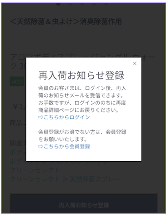 3.「再入荷お知らせ登録」のガイドが表示されるので、